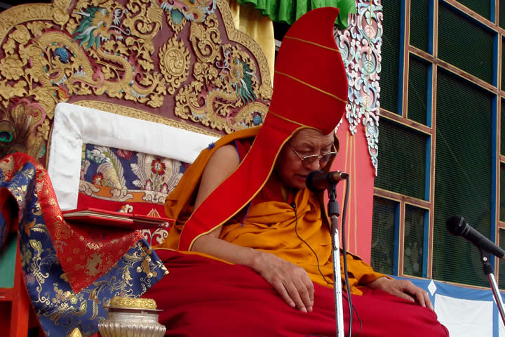 Kyabje Trulshik Rinpoche bestowing the empowerment of Minling Chokhör at Mindrolling Monastery in 2007.