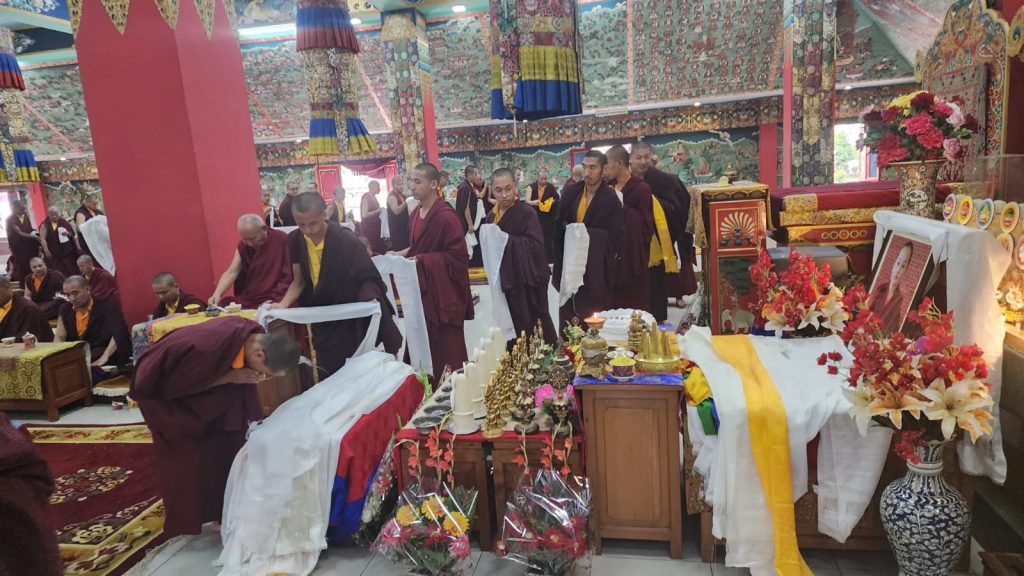 Mindrolling Monastery and Samten Tse Retreat Center in India, Minling Lotus Garden in the United States, and the Mindrolling sangha groups across Europe, Asia, and North America made vast mandala offerings and offered prayers and aspirations for the two Rinpoches.
