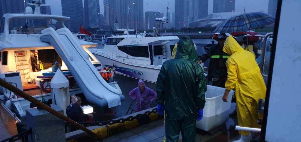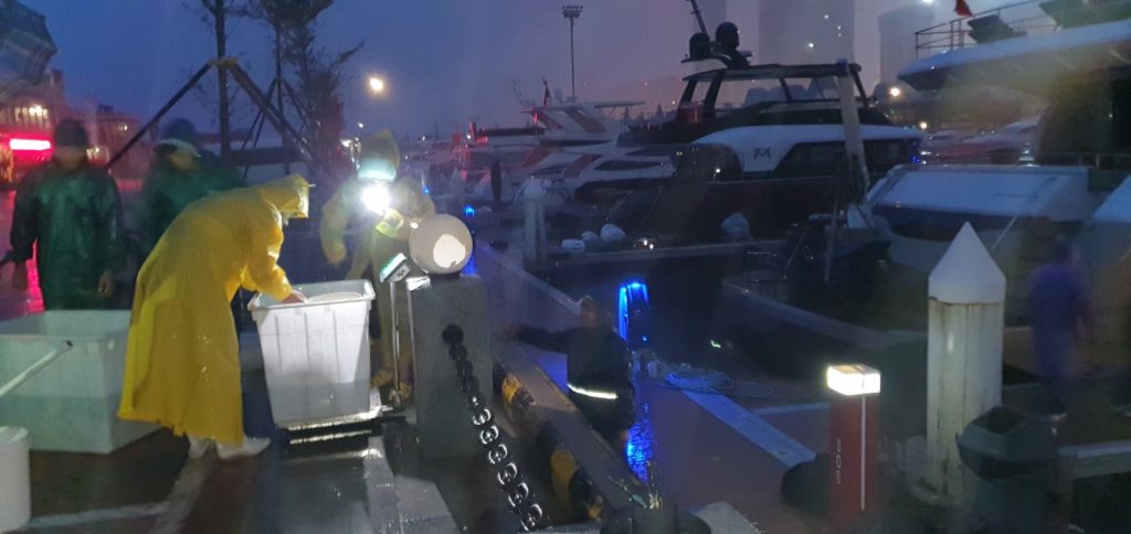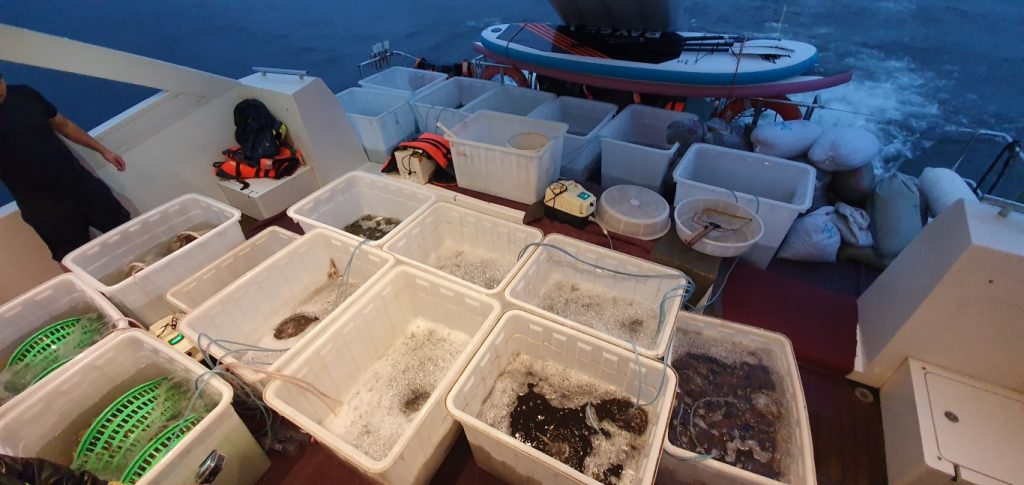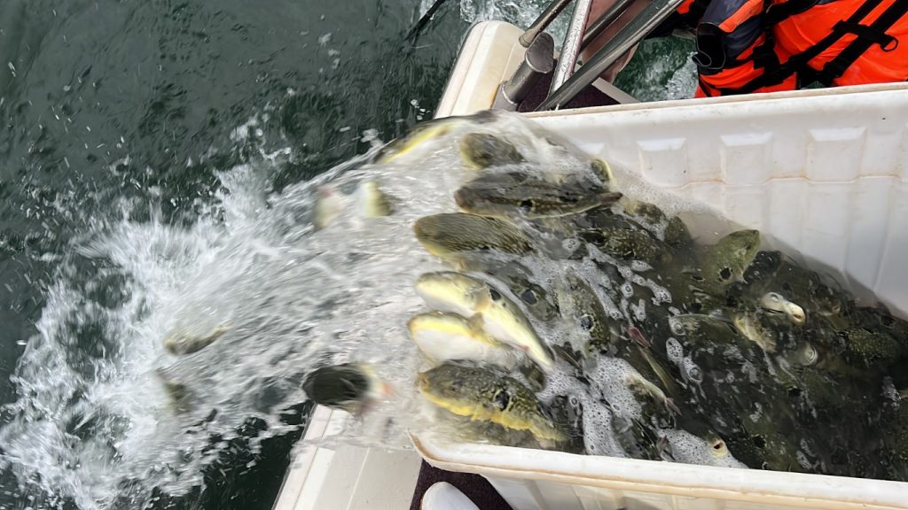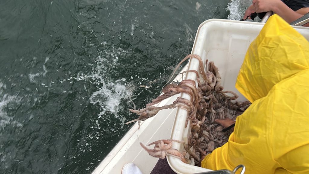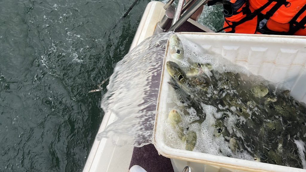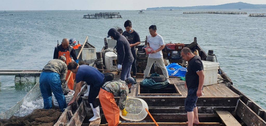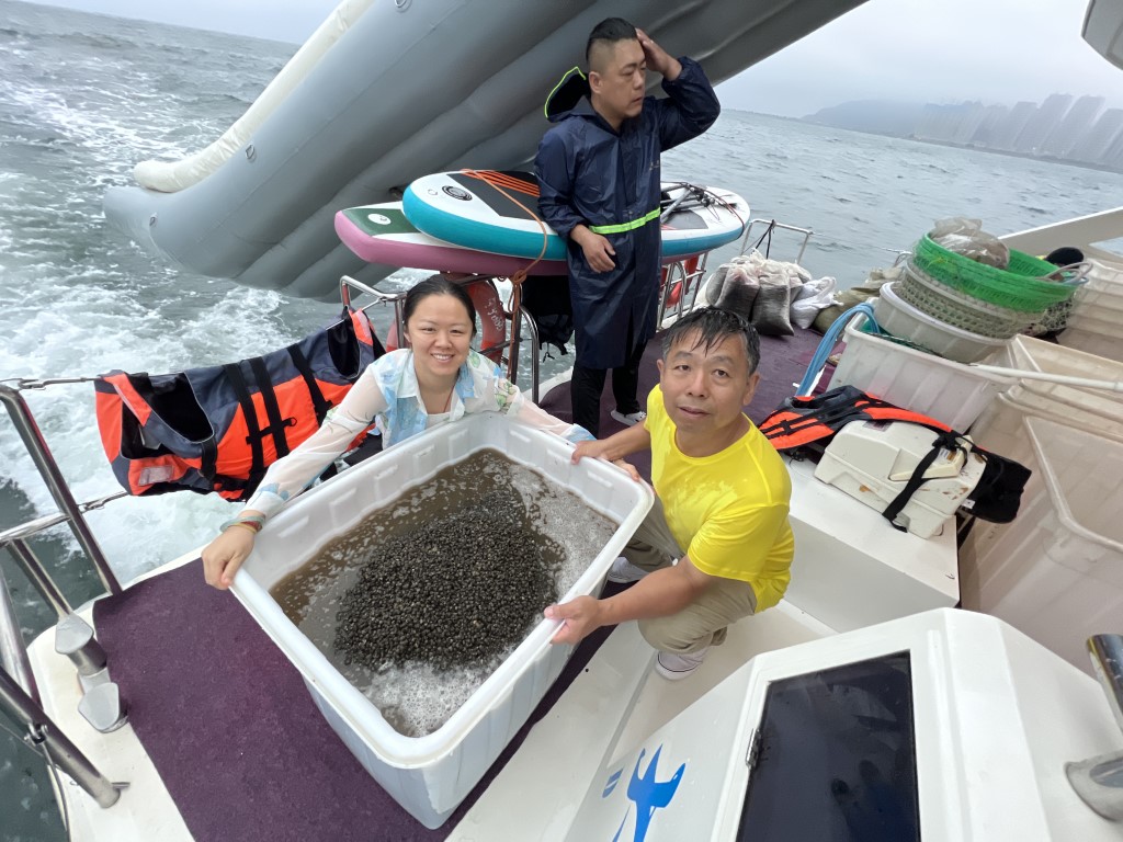 Early on the morning of August 19, 2022, the team at One Aspiration Life Saving Center went to the live fish market and began purchasing many sea snail periwinkles, octopi, crabs, eels, puffer fish, flounder, porgi, filefish, black spotted bass, rockfish and greenling fish and loaded them onto the boat. In total, more than 3.2 million aquatic animals were saved from the market and released back into their natural habitat in areas where fishing is forbidden. Many of these fish are pregnant at this time of year, and so even more lives were saved. The worldwide sangha donated more than US $40,000 that funded this life release.