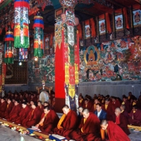 In 2010 Rinpoche organized the first India Retreat at the Mindrolling Monastery in Dehra Dun, with a second retreat taking place in 2011. The 2-week retreat is held annually in January or February just prior to Losar (Tibetan New Year). Participants travel to Mindrolling Monastery from Europe, Asia, and North America. During the 2-week retreat Rinpoche leads the intensive meditation sessions and gives daily teachings.