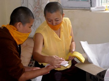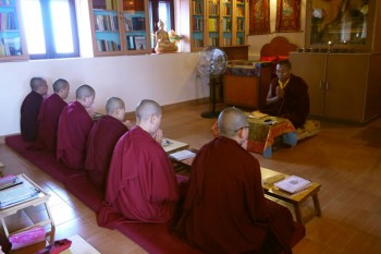 Under Rinpoche’s leadership, nearly 50 nuns from India, Tibet, Bhutan, and Nepal study and practice the Dharma at Samten Tse. The nuns study recitation, calligraphy, grammar, philosophy, rituals, the playing of ritual instruments, and English. They regularly undertake practice and meditation retreats.