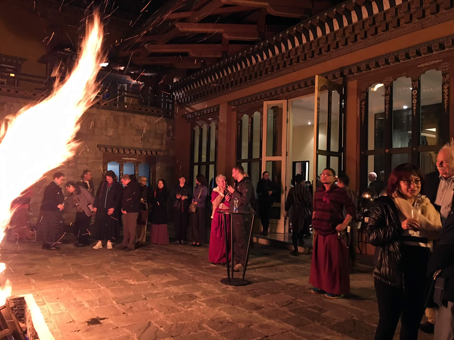 Early the following morning, the group flew from New Delhi, India to Paro, Bhutan. After a spectacular sun-rise flight along the Himalayan mountain range, the pilot negotiated the challenging landing at Paro Airport with great precision and received applause from his passengers. Once immigration was completed, a tea and rice ceremony was offered to Rinpoche, the Mindrolling family and the entire group. Following this warm welcome everyone climbed into waiting buses and met the drivers and guides who would be with them for the entire pilgrimage. The journey from Paro to Thimphu took several hours and group members peered eagerly from the windows to see this new and magical land.