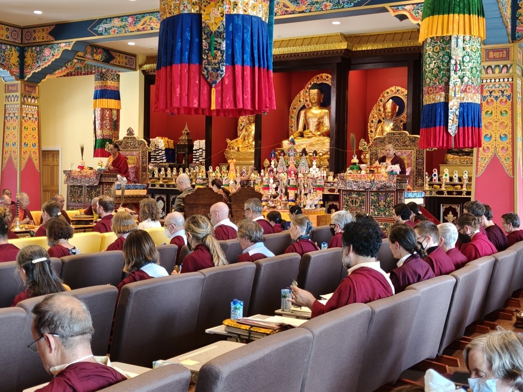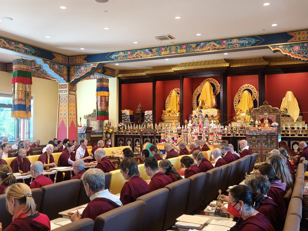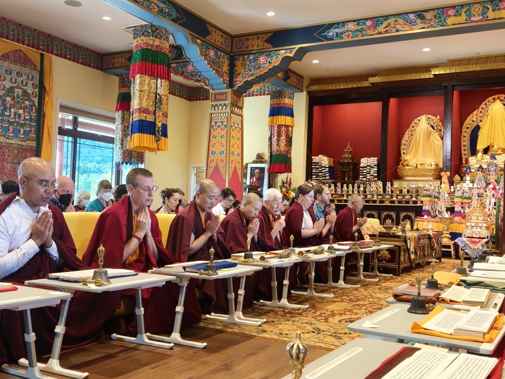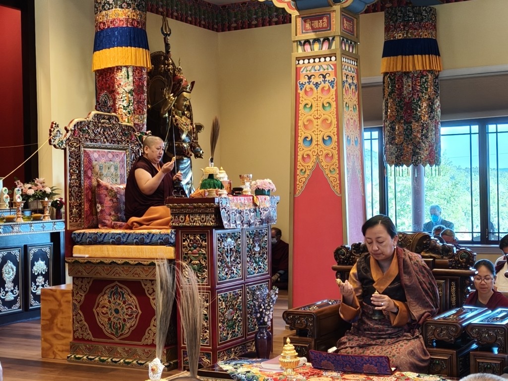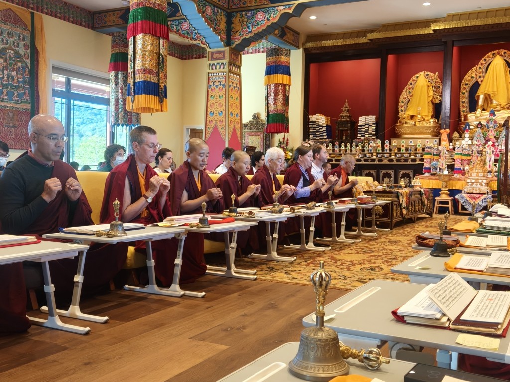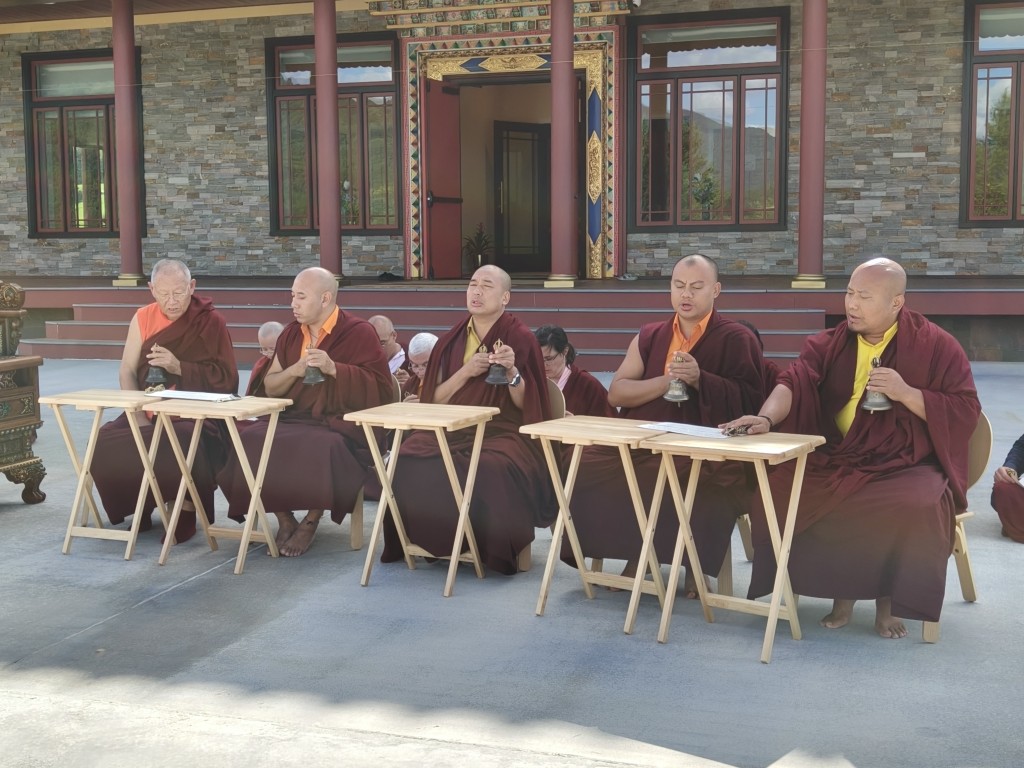 The Birthday of Minling Jetsün Khandro Rinpoche was celebrated on the 19th of August. Minling Dungse Rinpoche and Minling Jetsün Rinpoche offered mandala, ten sum, and the entire assembly of monks, nuns, and western practitioners made extensive prayers for Rinpoche’s long life and vast unobstructed Dharma activity.