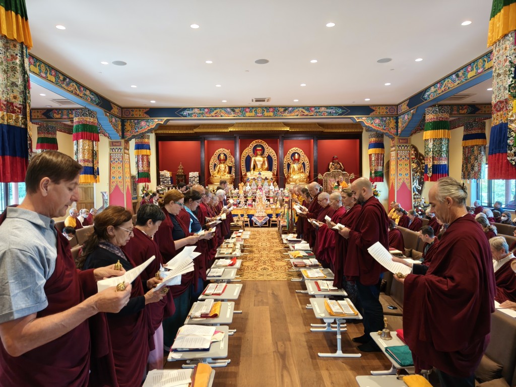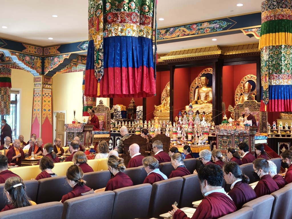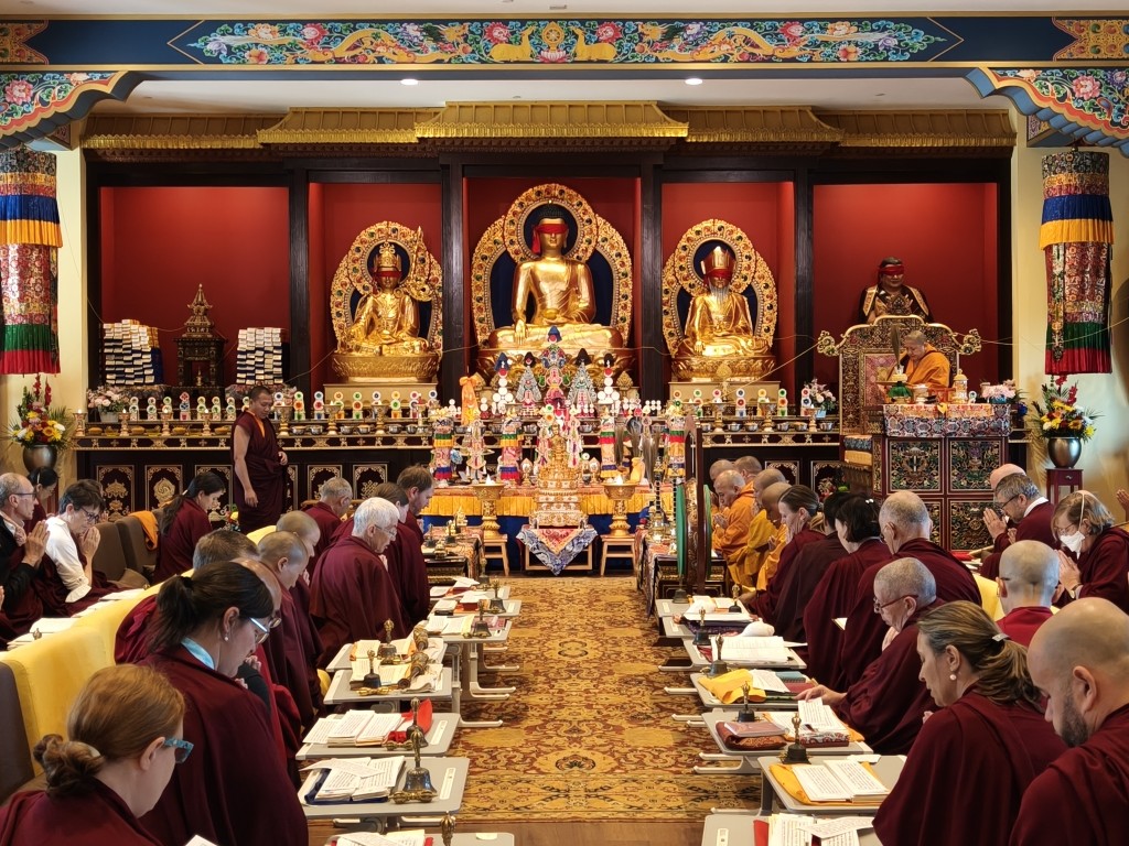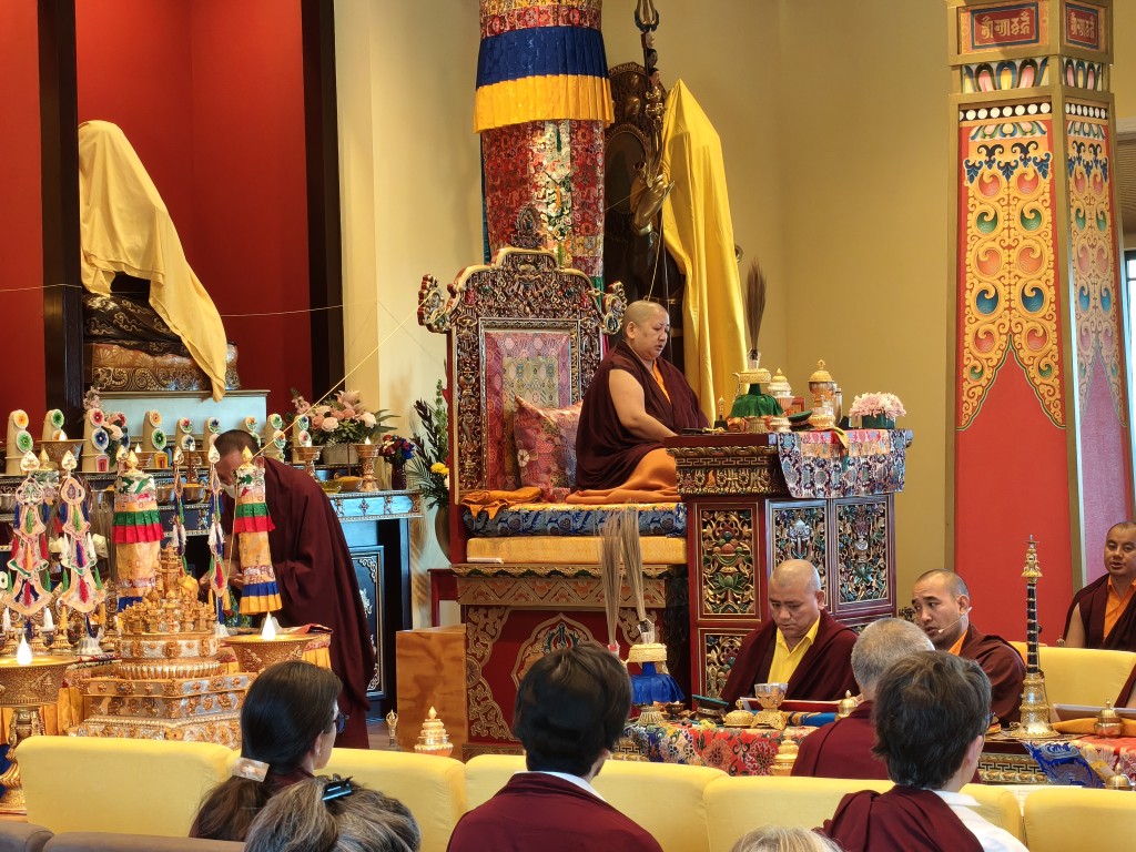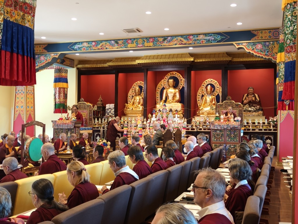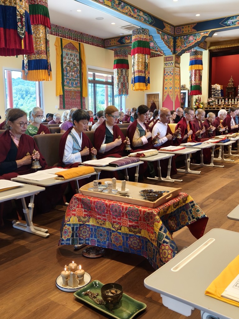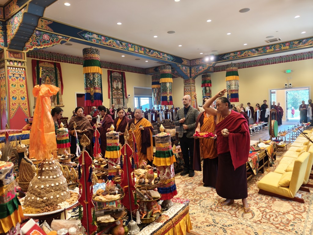 The Birthday of Minling Jetsün Khandro Rinpoche was celebrated on the 19th of August. Minling Dungse Rinpoche and Minling Jetsün Rinpoche offered mandala, ten sum, and the entire assembly of monks, nuns, and western practitioners made extensive prayers for Rinpoche’s long life and vast unobstructed Dharma activity.