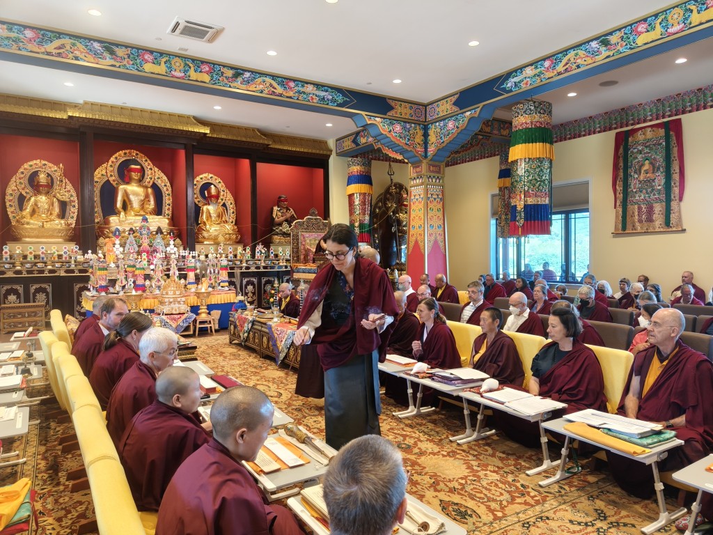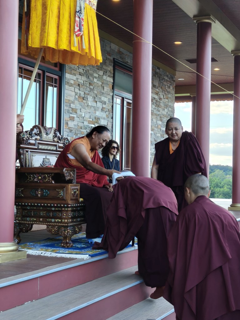 At the conclusion of the po chog, Rinpoche addressed the gathered assembly and the many sangha members who joined the online live stream. Rinpoche particularly thanked Jetsünla for her great vision, leadership, and tireless efforts for the sangha of Lotus Garden, Britton la for his wonderful dedication in overseeing the temple construction project, the many monks and nuns who have worked tirelessly in ensuring the completion of the temple, and the core members of administrative team for their service to the lineage and to Lotus Garden.