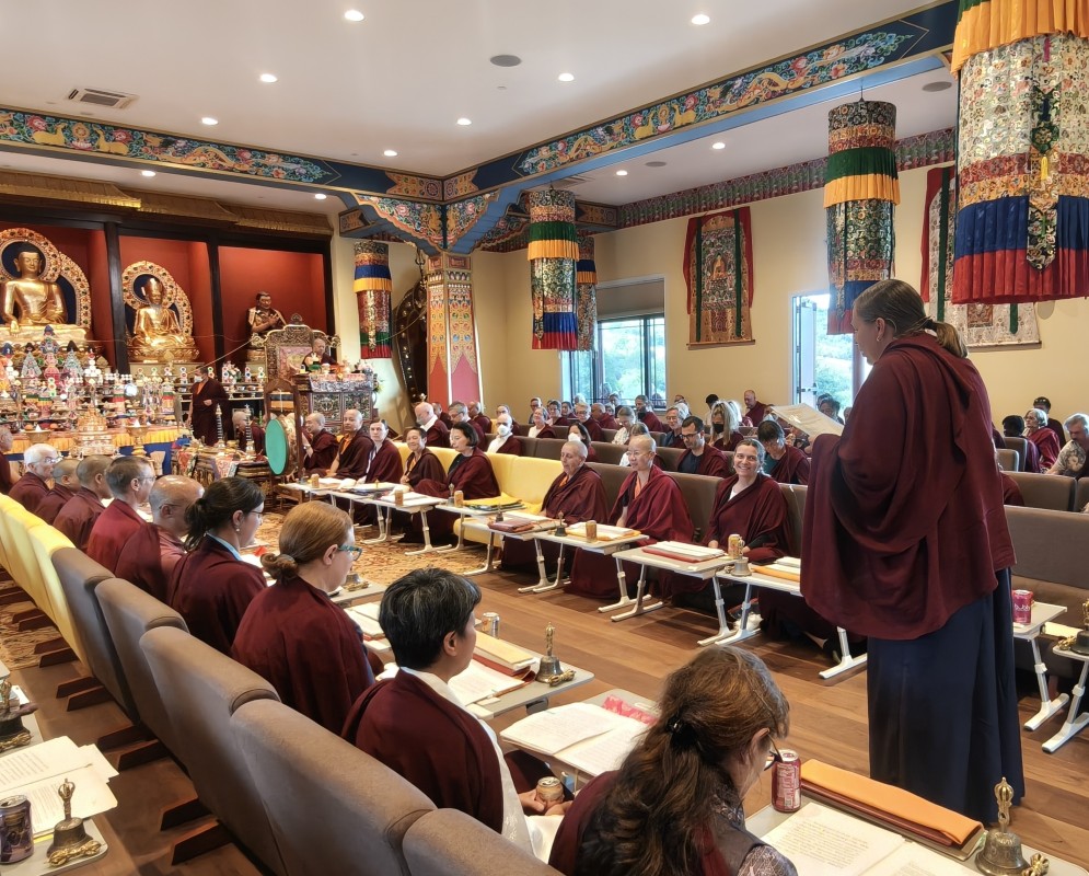Rinpoche also expressed appreciation to the Lopöns of Lotus Garden who have for many years served the sangha and guided students in their practice and studies. Rinpoche also announced the new teachers who will take on the responsibility of guiding the sangha under Rinpoche’s direction. The new generation of teachers were appointed with the titles of Acharyas, Upa-Acharyas, and Dharma Instructors and entrusted them to now serve the Dharma and the sangha of Mindrolling. The formal entrustment of the new generation of teachers will be held in 2026.