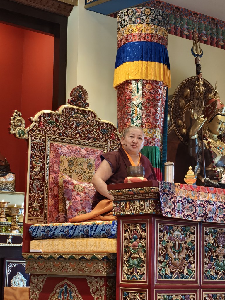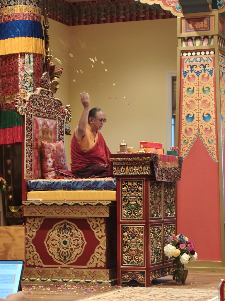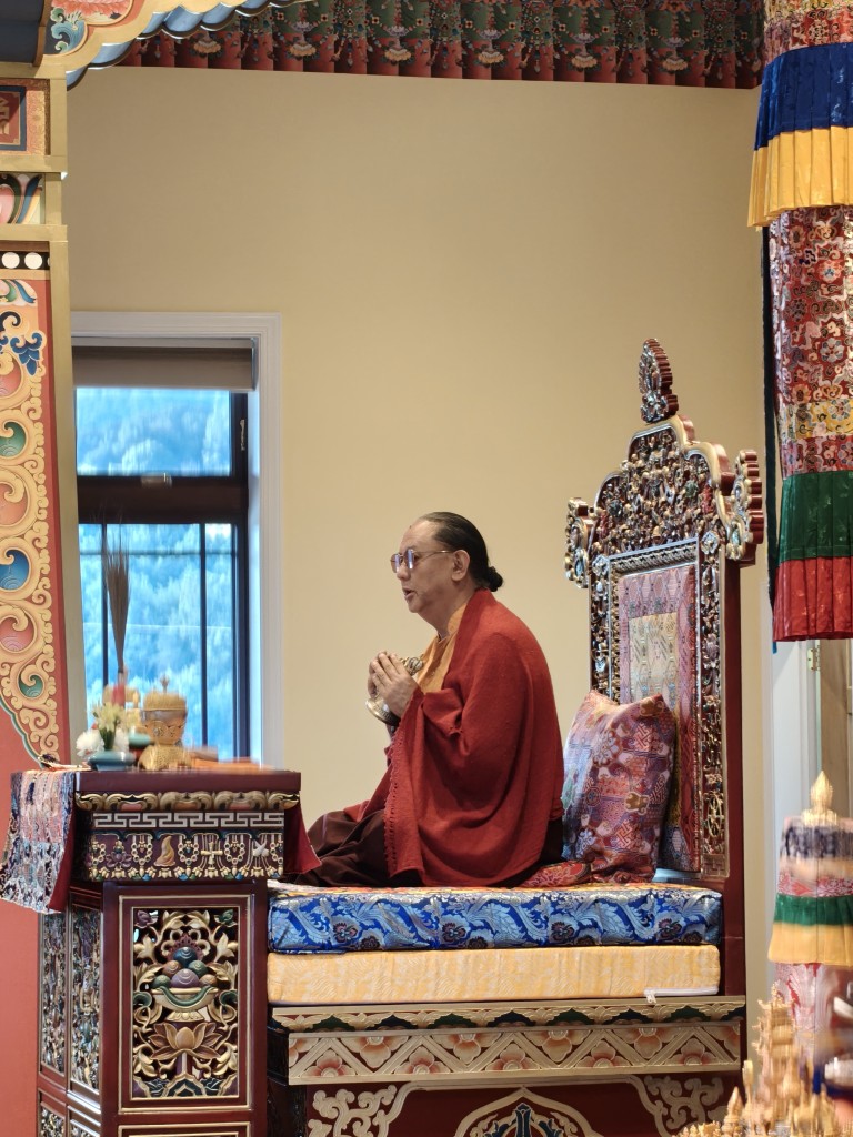 On the first day of teachings, after the sangha offered the mandala and ten sum (body, speech, and mind offerings) to Rinpoche, the Practice Intensive retreat began in Mindrol Gatsal. For 13 days, the annual Practice Intensive Retreat continued as Rinpoche bestowed teachings and instructions intertwined with practice days in the format of gar, dharma encampment.