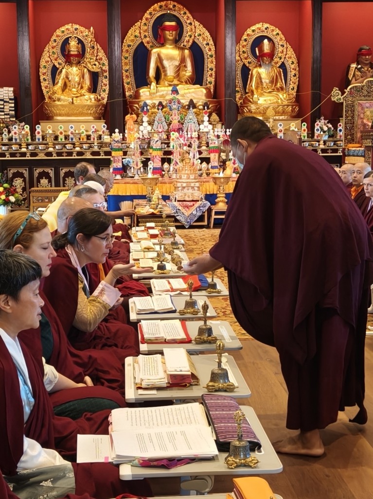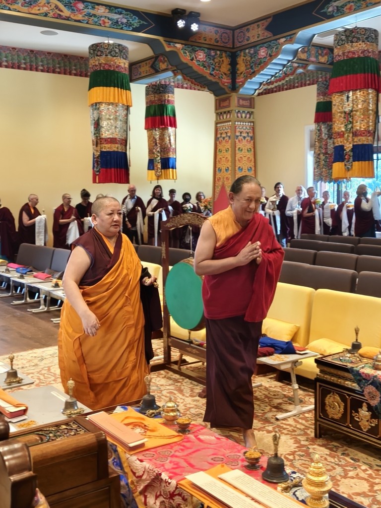 With the blessings and guidance of Minling Jetsün Khandro Rinpoche, Minling Jetsünla, and senior monks and nuns, the po chog and rabne of Mindrol Gatsal were completed this year. The official inauguration will be held in July, 2026. The Mindrol Gatsal inauguration will be a joyful occasion for the Mindrolling International sangha to gather and celebrate the opening of Mindrol Gatsal and the start of the next phase of Minling Pema Gatsal as the seat of Mindrolling in the West.