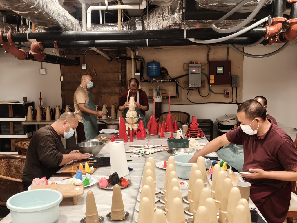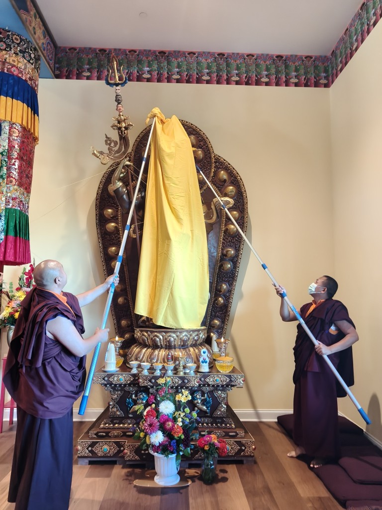 On the 26th of July, the ritual of opening of the eyes took place, as the statues in Ngedon Gatsal received the final stroke of paint filling the eyes by Minling Dungse Rinpoche and Minling Jetsün Khandro Rinpoche.