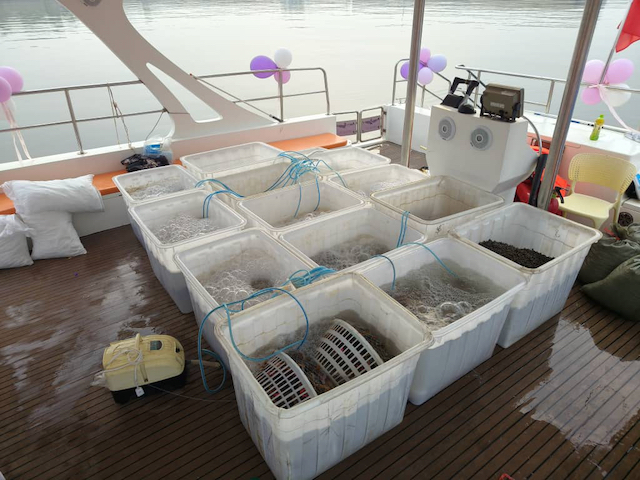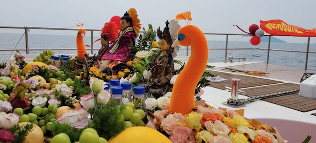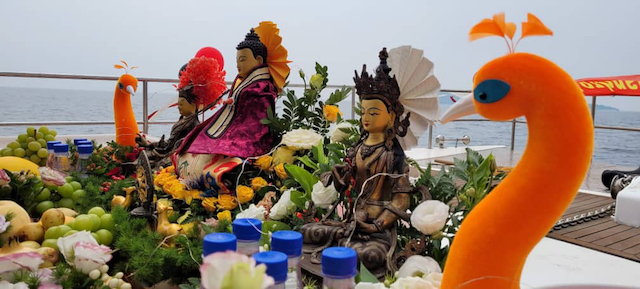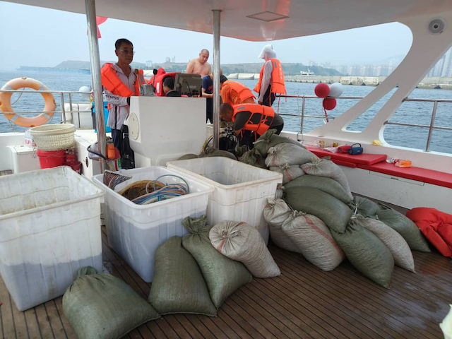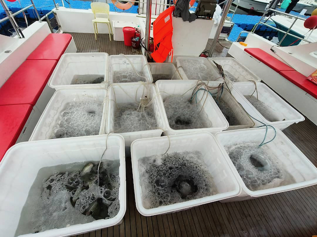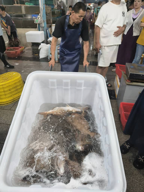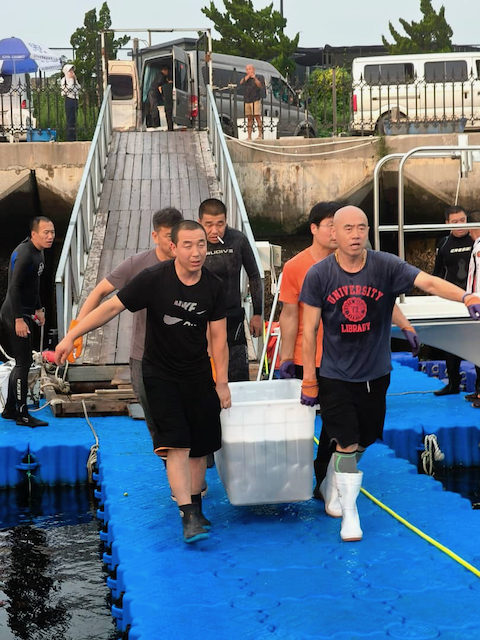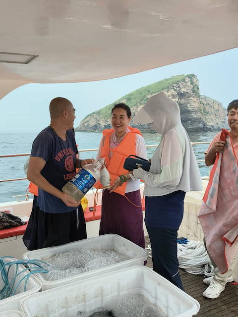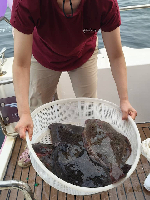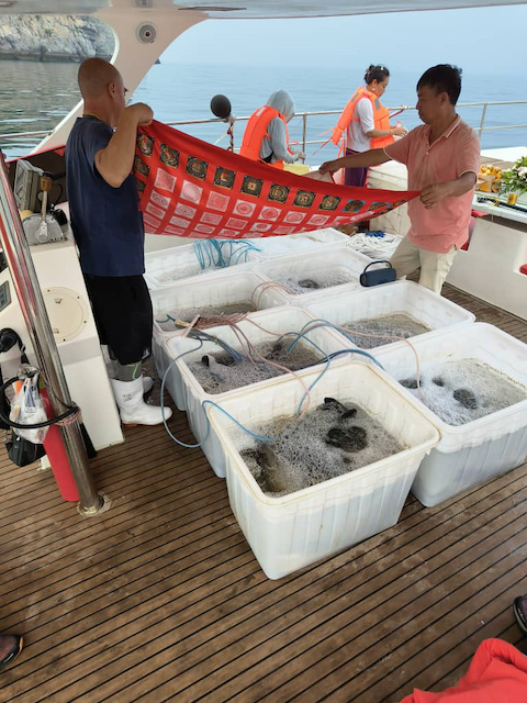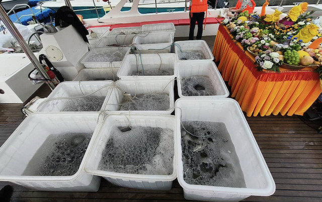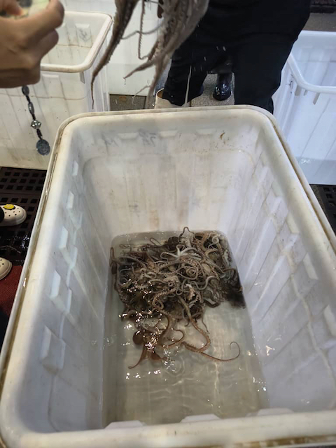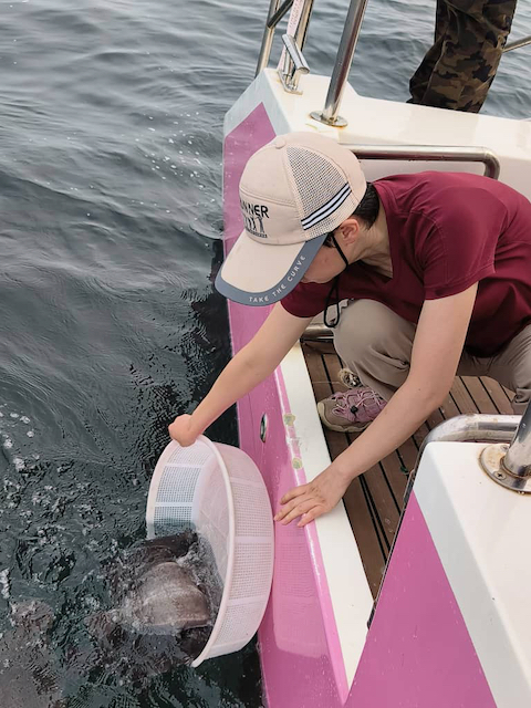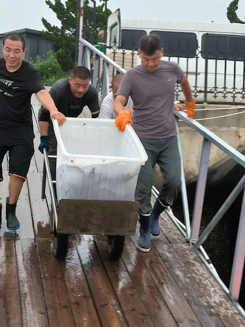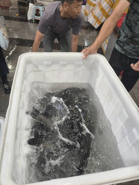 Early on the morning of August 19, 2023, the team at One Aspiration Life Saving Center went to the live fish market and began purchasing many filefish, Japanese black porgy, red sea breams/genuine porgy, eelpout fish, white-spotted conger eel, greenling fish/Hexagrammos otakii, rockfish/Sebastes schlegelii, turritella snail/shell, octopus variabilis saski, spotted halibut, tiger puffer/fugu, swimming crab, perigone crab/charybdis japonica, and mantis shrimp. In total, more than 4 million aquatic animals were saved from the market and released back into their natural habitat in areas where fishing is forbidden. Many of these fish are pregnant this time of year, such as the filefish who carry 60,000 eggs, and so even more lives were saved.  The worldwide sangha donated more than US $30,000 that funded this life release.