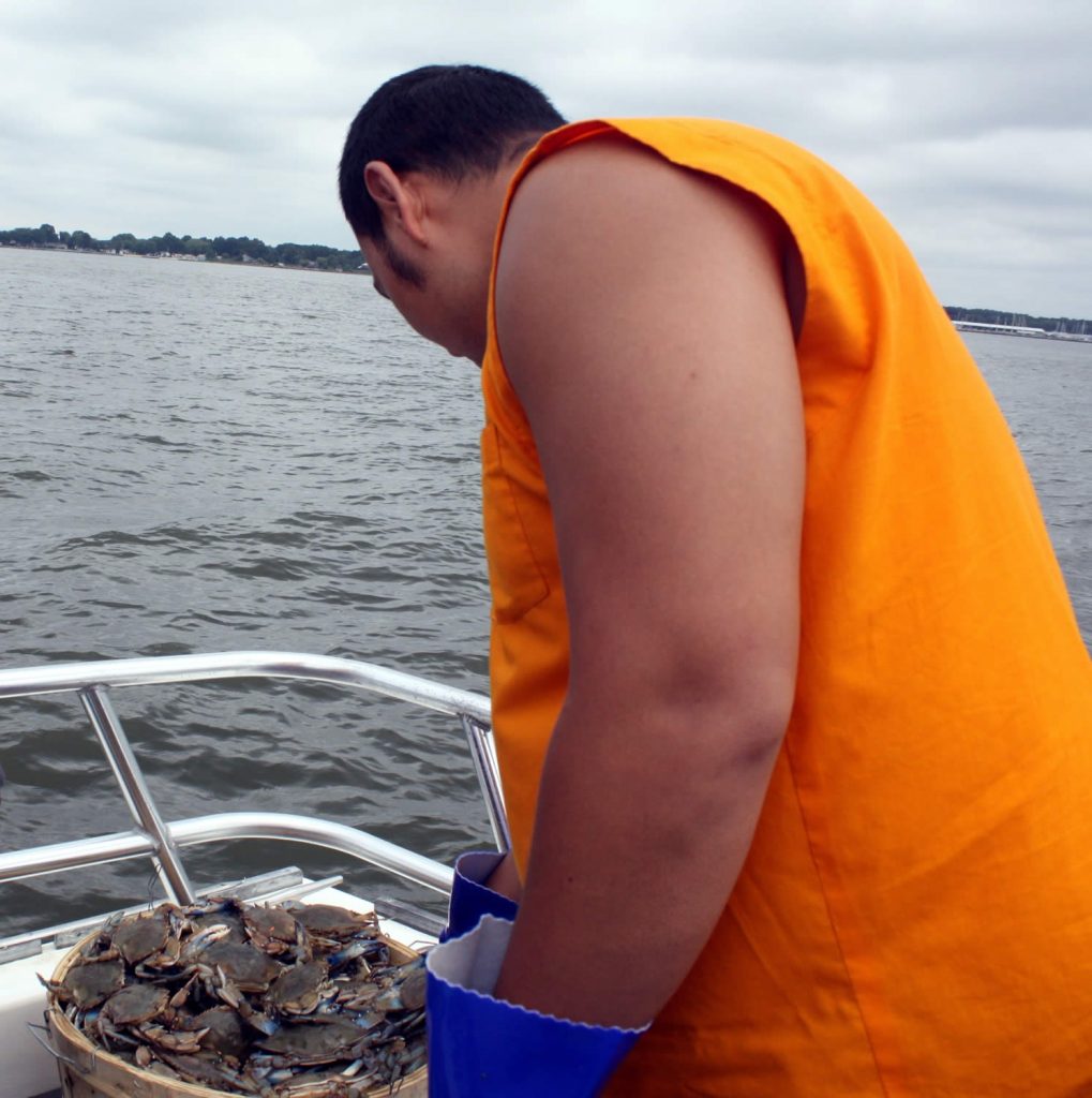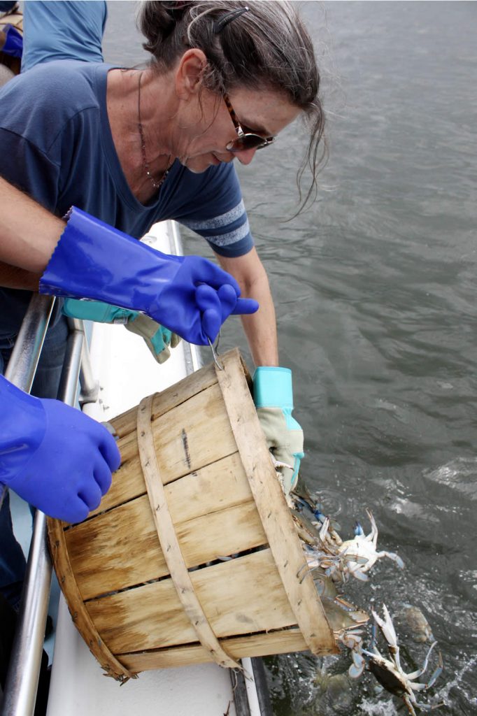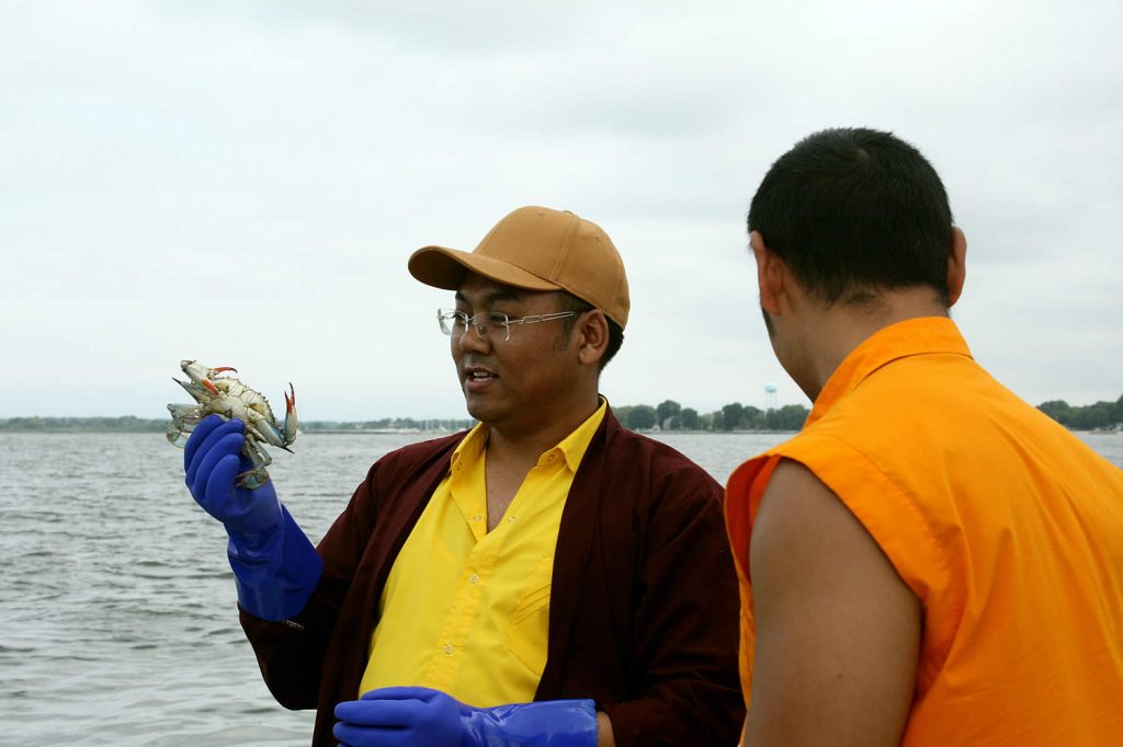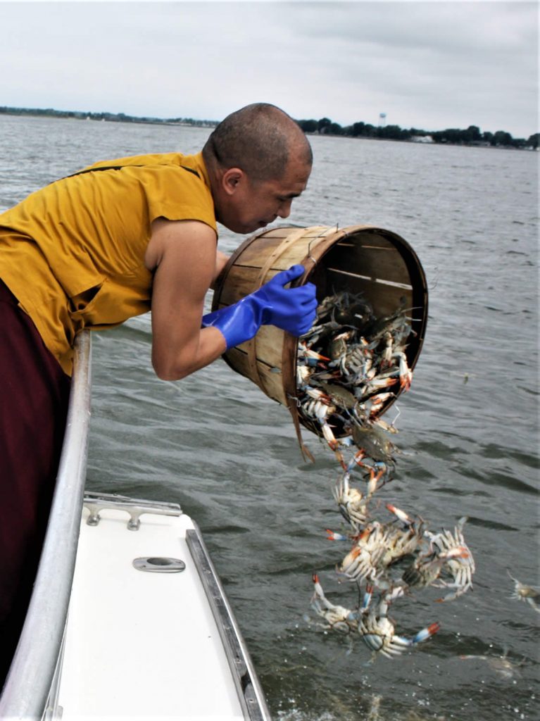 Sangha members wholeheartedly offered donations for the purchase more than 100 bushels of beautiful blue crabs from a local crab fishing business and to rent the boat which would carry the crabs to freedom. Each bushel contained over a hundred crabs which had been previously caught and refrigerated, and were now headed back to the waters from which they had come.