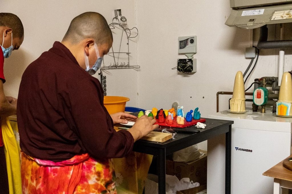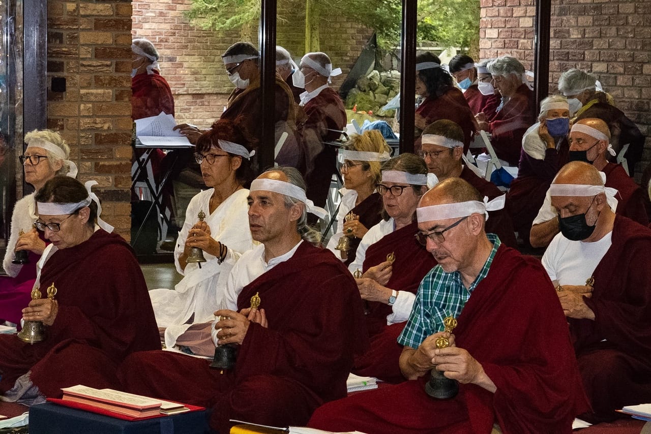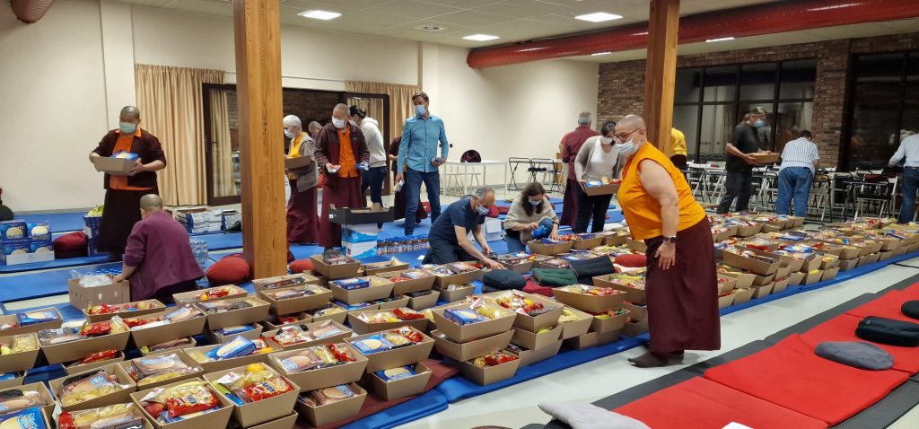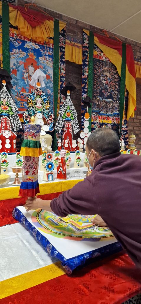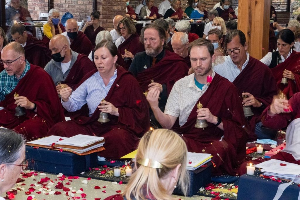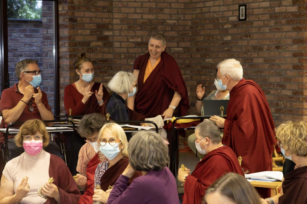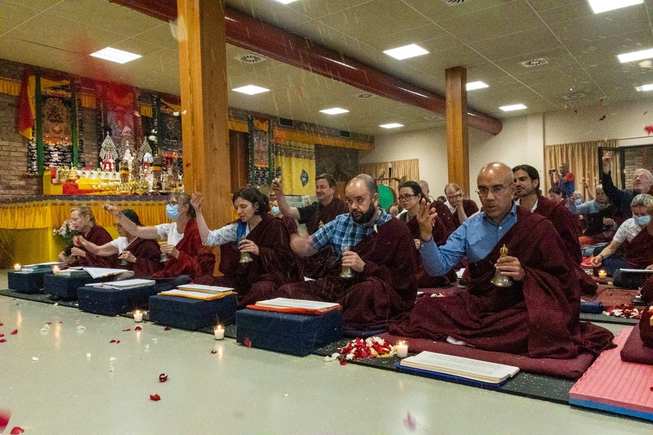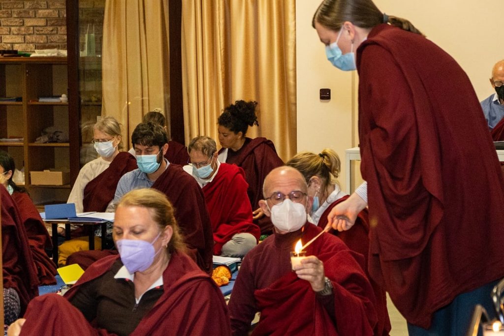 With great kindness, Minling Jetsün Khandro Rinpoche bestowed teachings, oral transmissions, and the Vajrasattva Empowerment to nearly three hundred sangha members from around the world. Monks and nuns from Mindrolling Monastery and Samten Tse Retreat Center made all the preparations for the mandala and the shrine and led the rituals. All sessions and teachings were translated into several languages, including Czech, Spanish, French, German, Polish, and Greek so that all present were able to receive the teachings fully and directly. Furthermore, dharma instructors led review sessions to ensure that all students understood and knew how to do the practices correctly.
