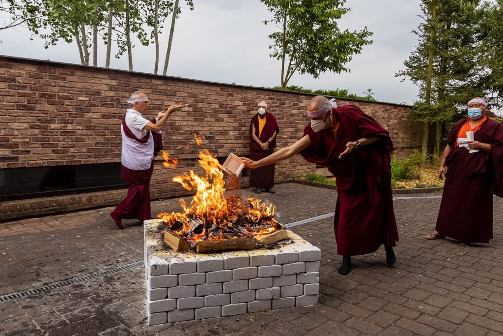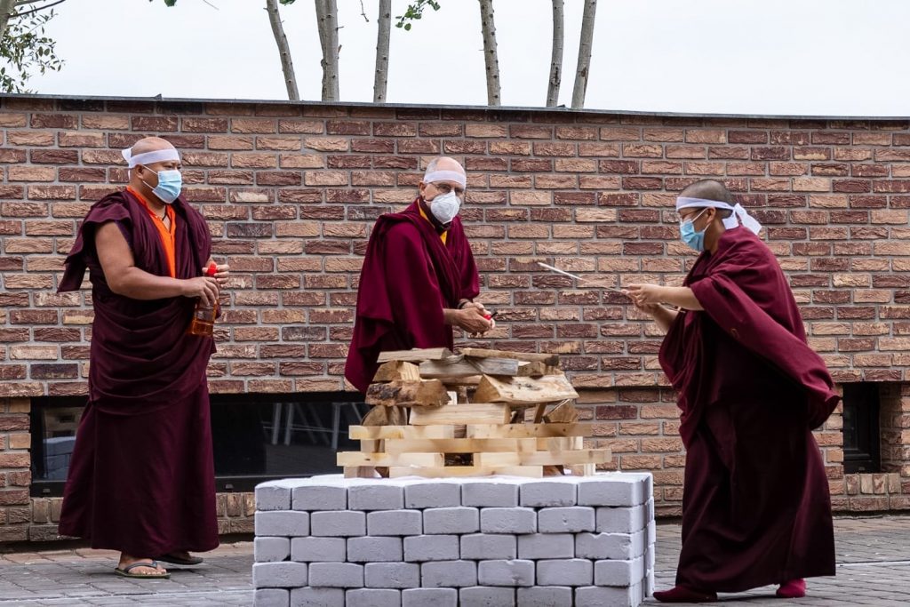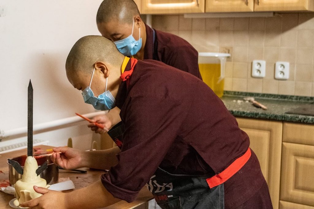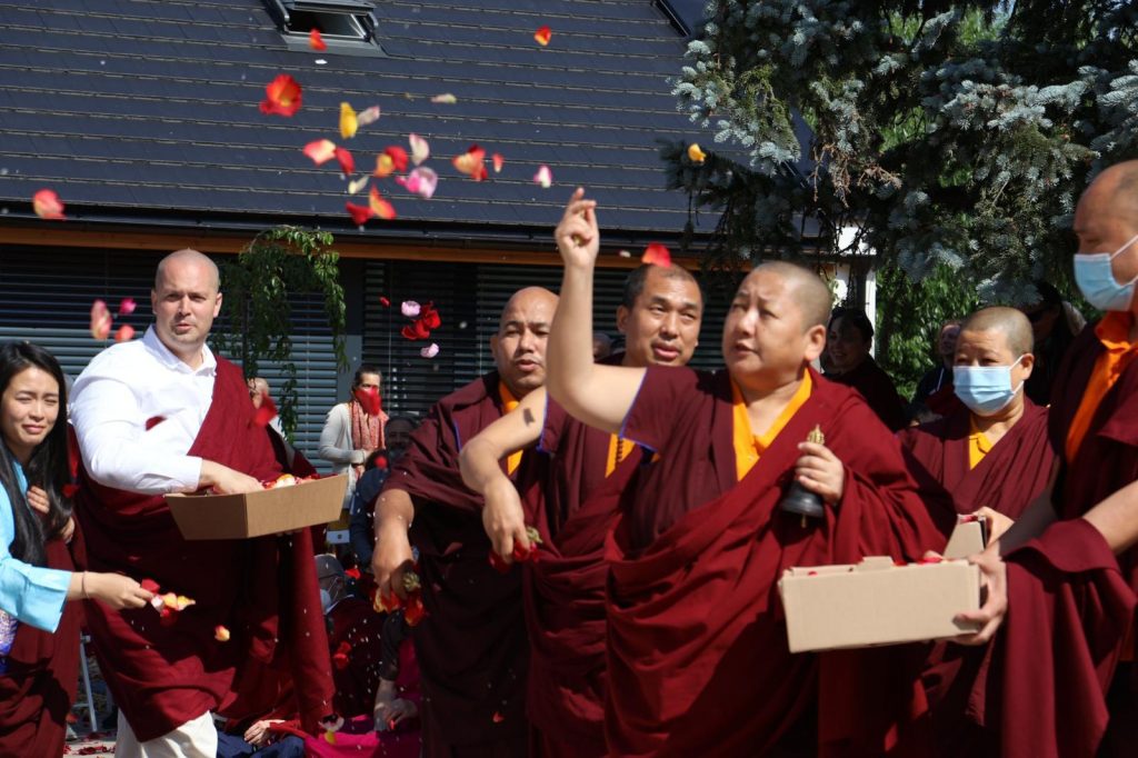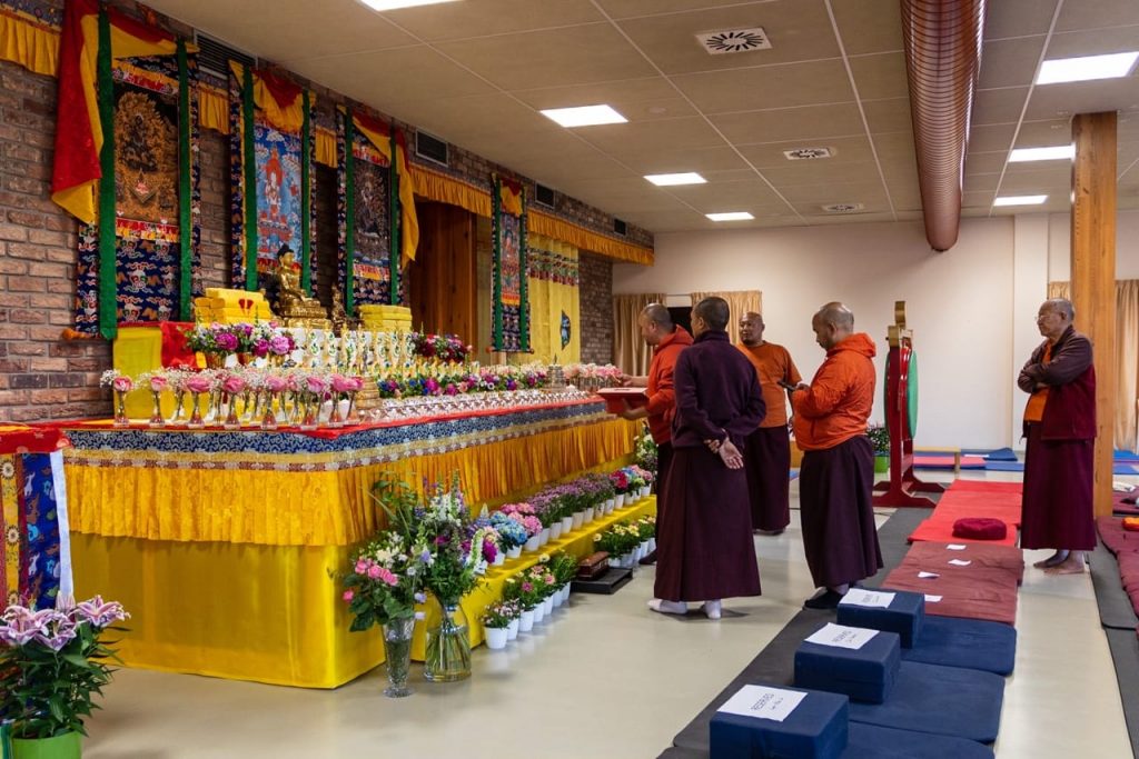 Immediately following the Vajra Assembly, the Third Minling Mahasangha was held, and the gathered assembly performed a three-day drubchö of the Minling Dorsem. The assembly was led in the practice by Minling Jetsün Khandro Rinpoche and the monks and nuns. Mr. Vladimir Zuzak and his wife, Hanna, the owners of the center where the Mahasangha was held, completed the construction of a stupa during the program. Minling Jetsün Khandro Rinpoche performed the consecration rituals on the last day of the drubchö.